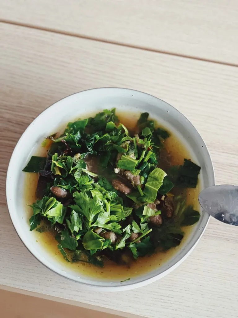 - 2-5 видів свіжої зелені (тут зелена цибуля, зелень селери, м'ята, кінза та петрушка)