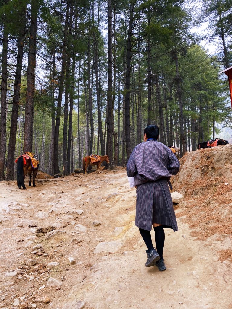 У нас був автомобіль з водієм та гідом, і щовечора ми просили повезти нас на ринок, щоб купити фрукти та горіхи. Сертифіковані гіди дуже добре натреновані. З глибокими знаннями історії, але часто з «правильними» відповідями. Усі, кого ми зустрічали, були дуже доброзичливі, дуже відкриті та дуже старалися. Це ще один сильний бік країни: англійська — друга офіційна мова у Бутані, так вирішив король. Все підростаюче покоління з дитинства говорить вільно. Тим самим королем запроваджено суворе правило носіння національного одягу всім локальним держслужбовцям і гідам. Ти просто не потрапиш до жодного державного органу чи національного музею, якщо на тобі немає картатого пледа-спідниці, гольфів, туфель і певного кольору шарфу. Шарфи варіюються за відтінками залежно від рангу та цілей.