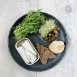 Complete. Without eggs. No cooking involved. Just assemble on a plate, but to have something to put on it, plan your shopping list in advance. Think about what fresh vegetables, prepared items (zucchini caviar?), salted fish/sardines in extra virgin oil/hummus, greens, quality cheese made from whole milk, nuts and seeds, and good bread or crispbreads you have. Think in terms of large food groups and variety.