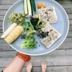 8 — vegetables with hummus (here blended with roasted eggplant, or optionally with greens or beets)
