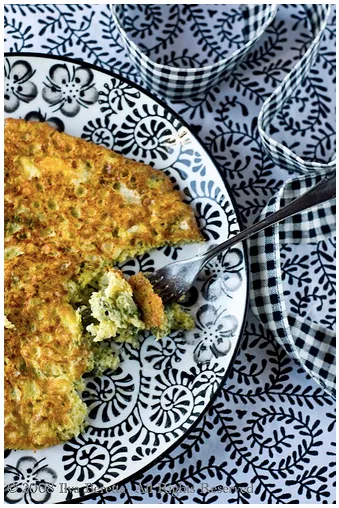 With leeks, any greens, zucchini, squash, peppers, or any favorite vegetables. Recipe for Frittata with leeks, asparagus and young peas.