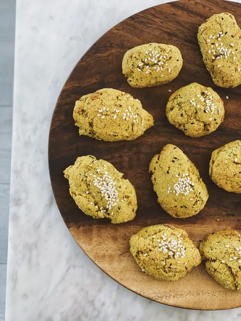 These little ones are made exclusively with coconut flour, flavored with turmeric, za’atar, sesame, and cumin.