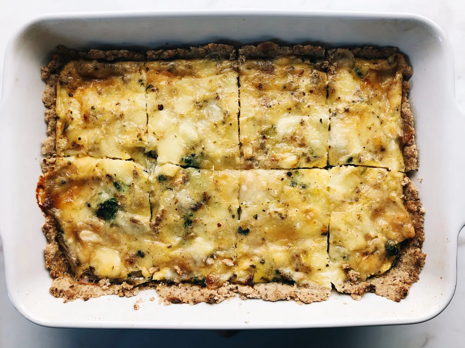 Spread the sautéed chard onto the crust, pour the cheese and egg mixture over it, and bake for about 30 minutes, until the filling sets and turns golden. Allow the pie to cool before serving!