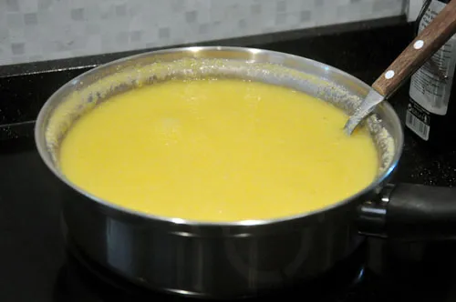 Quick-cooking polenta will be ready in 2 minutes, while regular polenta requires 20–30 minutes of occasional stirring. Once cooked, stir in one-third of the butter and mix well.