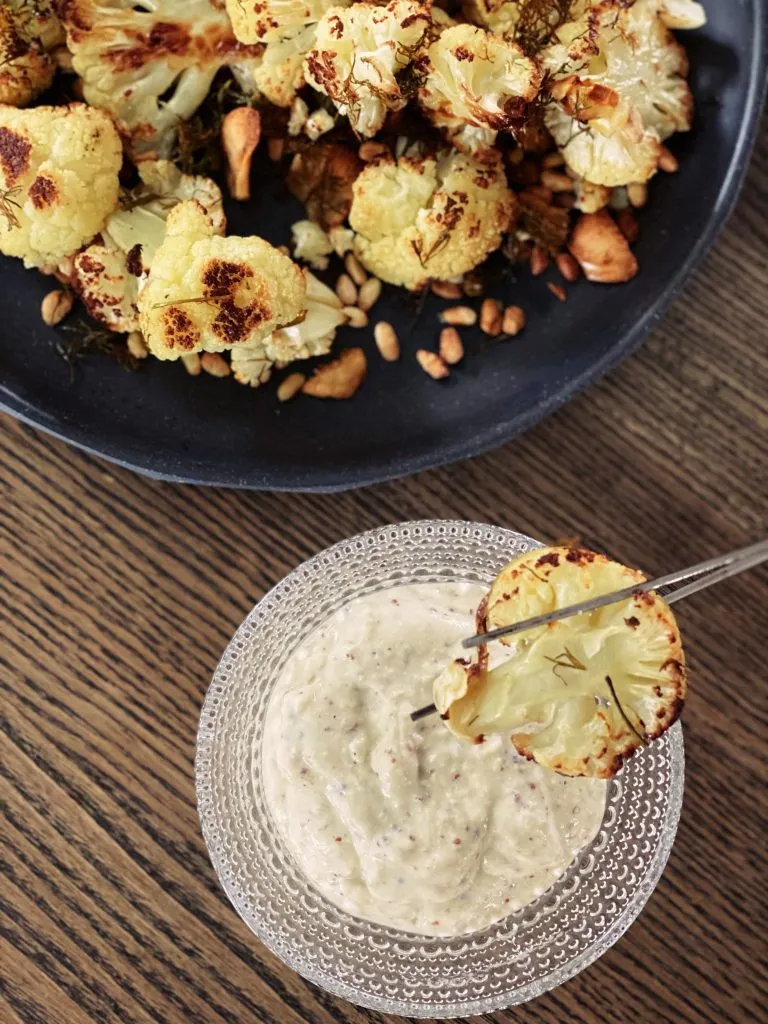 Cauliflower can be seasonally replaced with Jerusalem artichoke, parsley root, green beans, or a mix of bell peppers, eggplant, and tomatoes. Tofu mayo substitutes classic mayonnaise in a vegan diet and is perfect for anyone who prefers lighter, plant-based options.