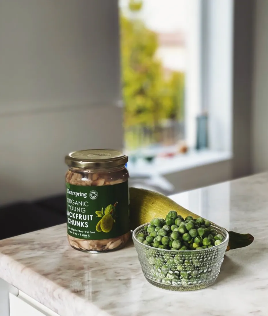 Simple to prepare and easy to adapt. Green peas are a great source of vegan protein, and zucchini makes an excellent companion. The third vegetable should be dense and flavorful. In this recipe, I’ve used something new — salted young jackfruit! I always encourage trying something different. Of course, it can be substituted with artichoke hearts, sweet corn, oyster mushrooms, or eggplant.
