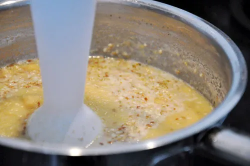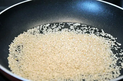 Добре розварюємо горох (від 1 години до 2). На випадок, коли під рукою немає тахіни, застосовуємо кунжут. Насіння кунжуту (5-6 ст. л.) ледве обсмажуємо на сухій пательні. Можна із зірою.