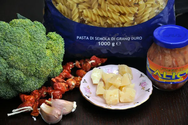 - 250 г пасти фузиллі (можна замінити оркетою або пенне)