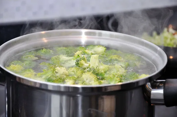 У підсолений окріп всипаємо пасту та суцвіття броколі.