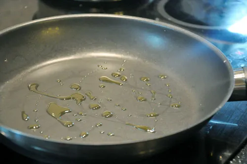 Розігріваємо пательню, збризкуємо її злегка оливковою олією.