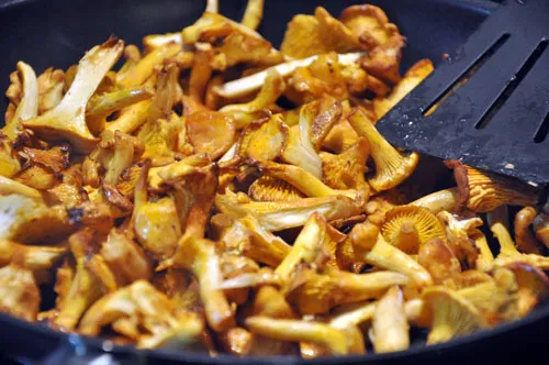 Збризкуємо винним оцтом, зовсім небагато і зменшуємо вогонь до майже мінімуму. Додаємо вершкове масло, що залишилося. Якщо вам здається, що його мало — сміливо додавайте ще. Трохи посолити. Тепер, коли воно розтопиться, гриби дадуть сік, який у поєднанні з маслом стане прекрасним, запашним соусом.