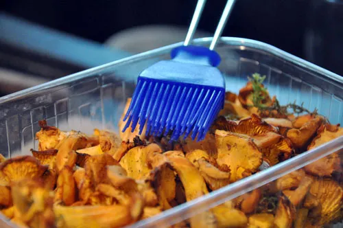 Гриби не миємо, особливо лисички, від цього вони втратять свій смак. Беремо щіточку і добре очищаємо лисички від бруду, гілочок та піску.