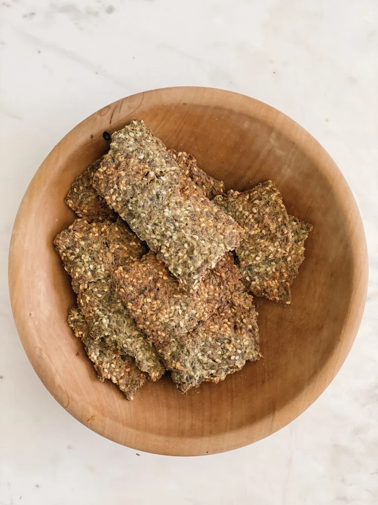 Не бійтеся експериментувати. І льон, і горіхи важливо замочити на ніч. Завдання — консистенція густої сметани у фінальному тісті. Вранці змішати лляний пудинг з горіхами чи насінням. Додати сухі прянощі, сіль та замісити дуже густе тісто. Вилити його на деко, застелений пергаментом, і розрівняти до рівня 3-4 мм. Зробити надрізи, щоб сформувати розмір хлібця. Духовку нагріти до 120°C. Поставити деко у духовку. Пекти близько години. Якщо маса буде надто волога, потрібно зробити трюк і перевернути тісто догори ногами, уклавши підсушеним верхом на дно (тримаючи за пергамент і не знімаючи його, це зробити просто). Бажано просушити та підрум'янити хлібці з обох боків.