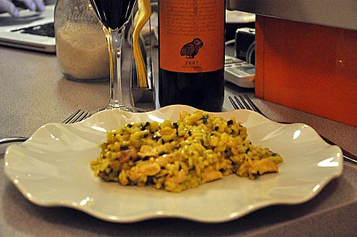 Спробуйте рис, коли він "майже готовий", тобто трохи сируватий усередині (арборіо важко переварити), закінчуємо.