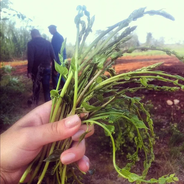 Щоб визначити придатні для приготування частини стебел потрібно легко зігнути стебло. Частина від головки до місця розлому (з характерним соковитим хрускотом) — їстівна, решта — жорстка і гірчить. Із зібраної спаржі ми заготовляємо для салату та фриттати, відкладаємо для ризотто. Всі рецепти можна готувати зі спаржею звичайною.