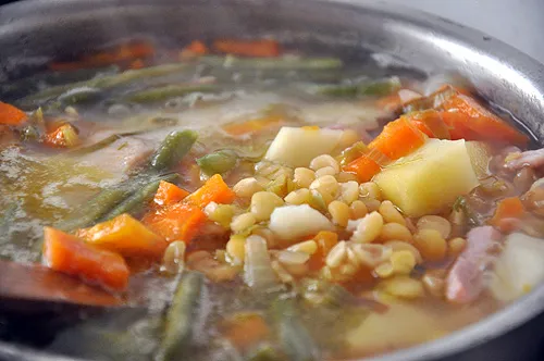 Горох, копченості, цибуля-порей, все це відмінно поєднується. До того ж, горохові супи, — упи другого дня, чим довше стоять, тим смачніше. Готувати досить довго, але ароматно та смачно.
