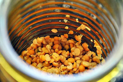У цей час добре промиваємо горох, заливаємо його окропом і даємо постояти, поки варяться ребра з овочами.