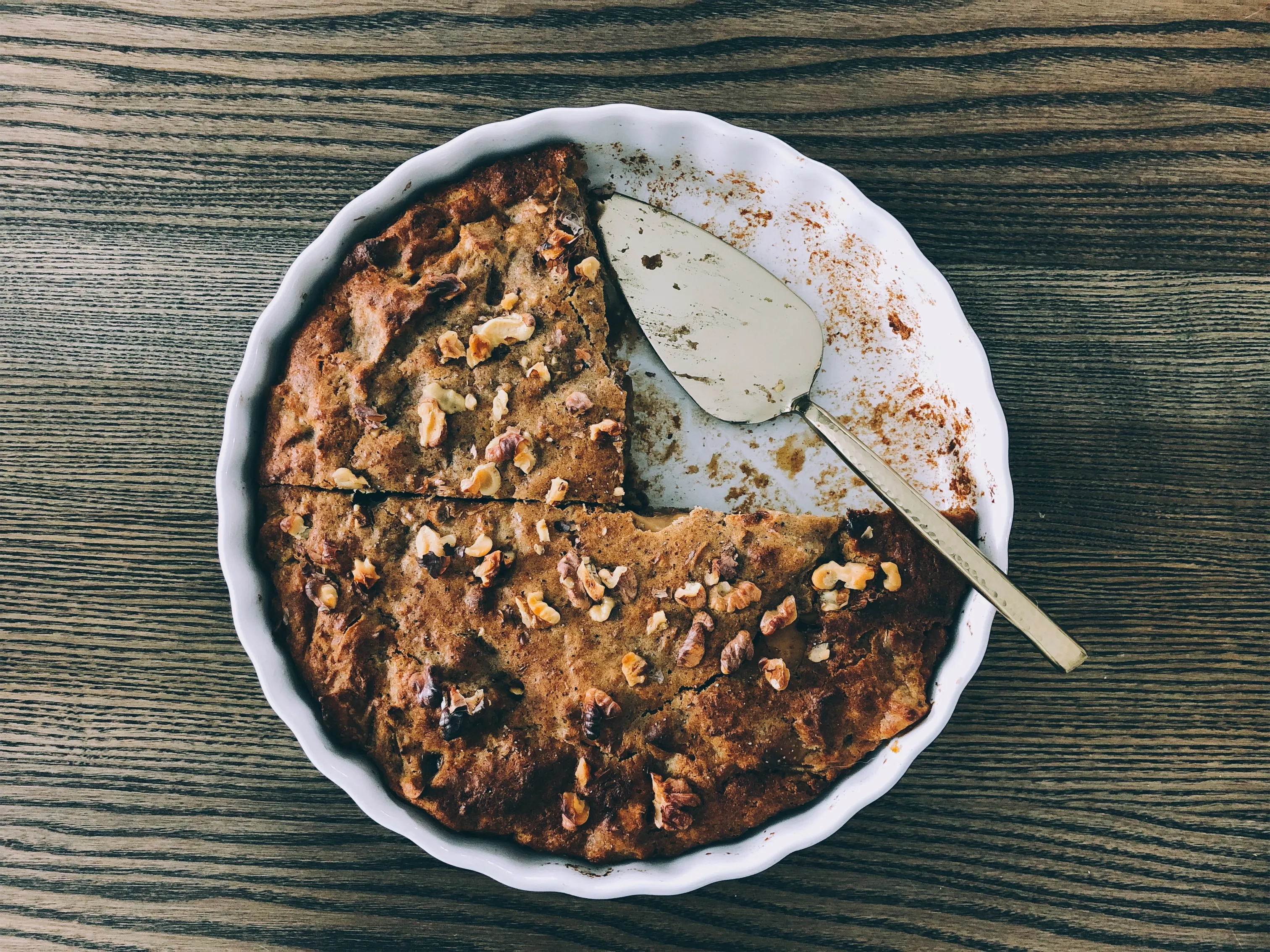 Простий пряний яблучний пиріг. На відміну від улюбленої шарлотки — з олією. Я використовувала навпіл оливкову та кокосову. Але можна брати будь-яку нерафіновану: виноградні кісточки, авокадо, льон.